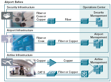。。由于預(yù)算不斷波動、物理空間有限,且已對網(wǎng)絡(luò)基礎(chǔ)設(shè)施進(jìn)行了投資,當(dāng)前的機(jī)場和航空公司無法承受巨大的商業(yè)風(fēng)險。而由分立IT網(wǎng)絡(luò)元素組成的基礎(chǔ)設(shè)施極大地限制了改進(jìn)的能力,帶來了功能化信息孤井、重復(fù)應(yīng)用、專用航空公司系統(tǒng)、不同的網(wǎng)絡(luò)協(xié)議,以及昂貴、復(fù)雜的網(wǎng)絡(luò)設(shè)計和部署。