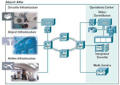 。。許多機(jī)場安全系統(tǒng)基于需人工協(xié)調(diào)提示和報警的不兼容應(yīng)用。通過在網(wǎng)絡(luò)上實(shí)現(xiàn)這些系統(tǒng)和在基于標(biāo)準(zhǔn)的通用基礎(chǔ)設(shè)施上傳輸信息,機(jī)場可實(shí)時關(guān)聯(lián)安全信息,并根據(jù)整體形勢作出立即行動。思科提供了一個強(qiáng)大的網(wǎng)絡(luò)基礎(chǔ)設(shè)施,可集成機(jī)場中的視頻監(jiān)視、其它物理安全設(shè)備和用于緊急響應(yīng)及通信的設(shè)備。無論設(shè)備使用有線還是無線連接,都可在所有類型的設(shè)備上實(shí)現(xiàn)語音、視頻和數(shù)據(jù)交換。