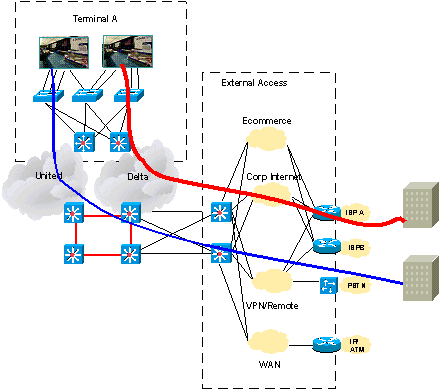 思科智能機場解決方案采用了多種聯(lián)網(wǎng)技術(shù)和拓撲結(jié)構(gòu):電子商務(wù)基礎(chǔ)設(shè)施(物理層)、智能網(wǎng)絡(luò)服務(wù)和大量的可行設(shè)計和架構(gòu)。思科機場網(wǎng)絡(luò)架構(gòu)由經(jīng)過思科企業(yè)解決方案設(shè)計測試實驗室預(yù)測試的成熟網(wǎng)絡(luò)部件組成。這些經(jīng)過測試的設(shè)計則是基于經(jīng)由構(gòu)建全球最大的網(wǎng)絡(luò)而得出的最佳實踐。測試結(jié)果請參見"解決方案參考設(shè)計指南