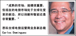 “在成熟的市場,規(guī)模是很重要的”,Dominguez承認(rèn),但是他又認(rèn)為,現(xiàn)在的電信市場處于全球化變革的前沿,大家都在思考如何建立一個全新的網(wǎng)絡(luò),并且整個網(wǎng)絡(luò)上的應(yīng)用也處于變化中,在這種情況下,“創(chuàng)新和智能還是非常重要的”,因此思科的機(jī)會還是非常大。