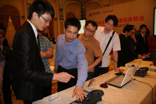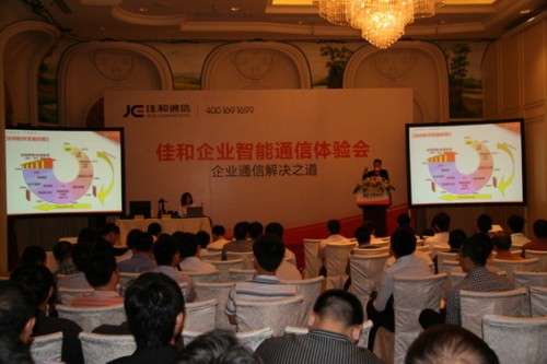 CTI論壇(ctiforum)4月25日消息(記者 潘婷婷): 廣東佳和通信技術(shù)有限公司主辦的首場(chǎng)企業(yè)智能通信體驗(yàn)會(huì),于2011年4月13日在廣州富力麗思卡爾頓酒店隆重召開(kāi),并取得圓滿(mǎn)成功。此次體驗(yàn)會(huì)來(lái)自佳和通信的負(fù)責(zé)人和業(yè)內(nèi)專(zhuān)家就佳和企業(yè)智能通信平臺(tái)的應(yīng)用以及協(xié)同辦公的發(fā)展趨勢(shì)發(fā)表了主題演講,為所有到場(chǎng)的100多位來(lái)賓做了詳實(shí)的介紹。同時(shí)展示了佳和“!毕盗械7個(gè)應(yīng)用解決方案,并對(duì)拳頭產(chǎn)品——智能IP話(huà)機(jī)T600、移動(dòng)分機(jī)M600、個(gè)人助理軟件IPA PRO等進(jìn)行了現(xiàn)場(chǎng)演示和互動(dòng),其目的在于使現(xiàn)場(chǎng)嘉賓充分感受企業(yè)智能通信的價(jià)值和魅力,同時(shí)親身體驗(yàn)到如何在在加速辦公自動(dòng)化的同時(shí)提高企業(yè)效率、節(jié)約成本。