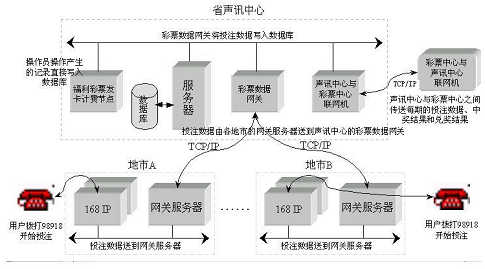 聲訊中心通過與彩票中心的聯(lián)網(wǎng)機(jī)定時(shí)地在開獎(jiǎng)前把每期彩票投注數(shù)據(jù)傳送給彩票中心;彩票中心在開獎(jiǎng)后把中獎(jiǎng)號(hào)碼、各等獎(jiǎng)的數(shù)目、獎(jiǎng)金金額等數(shù)據(jù)傳送到聲訊中心,聲訊中心將中獎(jiǎng)號(hào)碼和各等獎(jiǎng)金金額存入數(shù)據(jù)庫并根據(jù)中獎(jiǎng)號(hào)碼開獎(jiǎng),生成中獎(jiǎng)記錄,通過核對(duì)中獎(jiǎng)數(shù)目后,電信營業(yè)部門可以開始兌獎(jiǎng)。聲訊中心每期將兌獎(jiǎng)結(jié)果傳送到彩票中心備案。