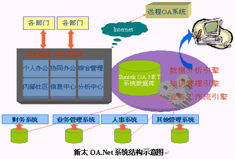 OA.NET采用了應(yīng)用服務(wù)器、群件數(shù)據(jù)庫、關(guān)系數(shù)據(jù)庫三元合一的技術(shù)體系架構(gòu),集成了XML、Web Service等業(yè)界最新技術(shù),能夠在Win2000以及Sun、IBM、HP等多種Unix、Linux環(huán)境下運(yùn)行,并具有良好的平臺(tái)兼容性。OA.NET系統(tǒng)具有高度靈活性、簡(jiǎn)單實(shí)用性、知識(shí)管理解決方案、和業(yè)務(wù)系統(tǒng)的無縫融合、高度的個(gè)性化等特色,被業(yè)內(nèi)專家認(rèn)為代表了最新的辦公自動(dòng)化發(fā)展水平,并引領(lǐng)著辦公自動(dòng)化的先進(jìn)發(fā)展方向。