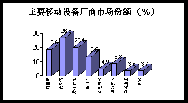 。3)市場(chǎng)趨勢(shì)及預(yù)測(cè): 2001年移動(dòng)網(wǎng)絡(luò)設(shè)備市場(chǎng)預(yù)計(jì)總體保持快速增長(zhǎng),在GSM領(lǐng)域,中國(guó)移動(dòng)25城市GPRS實(shí)驗(yàn)網(wǎng)的開(kāi)通,對(duì)移動(dòng)互聯(lián)將是實(shí)質(zhì)性的推動(dòng),WAP熱炒冷賣(mài)的局面會(huì)有所改變。各大設(shè)備廠商受此影響將沉浮巨大,愛(ài)立信、諾基亞、摩托羅拉、華為技術(shù)等公司將順勢(shì)擴(kuò)大市場(chǎng)份額,市場(chǎng)集中度進(jìn)一步提高。