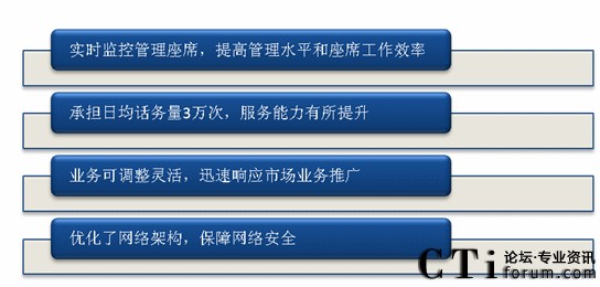 北京農(nóng)村商業(yè)銀行呼叫中心項(xiàng)目負(fù)責(zé)人在接受采訪時(shí)表示,從銀行的運(yùn)營(yíng)管理角度而言,通過(guò)部署IPCC解決方案,實(shí)現(xiàn)了以下改變:一、實(shí)時(shí)監(jiān)控管理座席,提高了管理水平和座席工作效率;二、系統(tǒng)日承擔(dān)話務(wù)量3萬(wàn)次,服務(wù)能力有所提升;三、可以靈活調(diào)整業(yè)務(wù),迅速相應(yīng)市場(chǎng)業(yè)務(wù)推廣;四、優(yōu)化了網(wǎng)絡(luò)架構(gòu),保障了網(wǎng)絡(luò)安全。