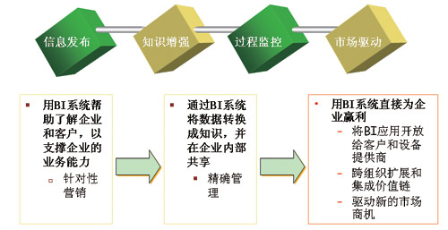 而在當(dāng)前企業(yè)轉(zhuǎn)型的關(guān)鍵階段,我們更要強(qiáng)調(diào),通過BI系統(tǒng)對數(shù)據(jù)的分析挖掘形成企業(yè)內(nèi)部能夠共享的知識,真正運(yùn)用到企業(yè)運(yùn)營的各個環(huán)節(jié)中去,支撐精細(xì)化營銷和精確化管理等。