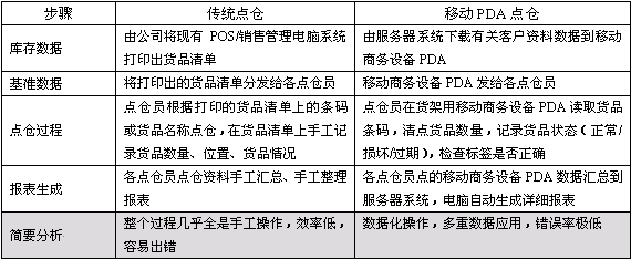 以下對傳統(tǒng)盤點(diǎn)和移動PDA盤點(diǎn)的比較: