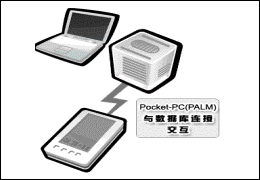 市場和營銷人員(促銷員)回到公司后將PDA和服務(wù)器端系統(tǒng)相聯(lián),實(shí)現(xiàn)前端的移動應(yīng)用系統(tǒng)和公司內(nèi)部系統(tǒng)的數(shù)據(jù)同步功能。
