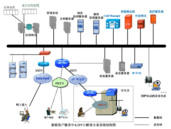 在IP技術(shù)應(yīng)用日益廣泛的今天,新晨集團(tuán)和著名網(wǎng)絡(luò)技術(shù)提供商-美國思科系統(tǒng)有限公司(CISCO)合作,推出了基于IP技術(shù)的CALL CENTER解決方案。該方案以CISCO IP CONTACT CENTER平臺為核心,簡稱IPCC。