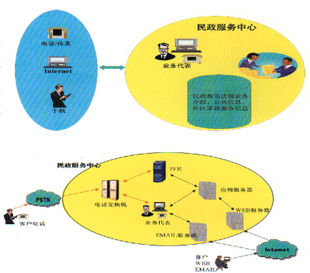 民政社區(qū)服務(wù)中心利用CTI技術(shù)、網(wǎng)絡(luò)技術(shù)、數(shù)據(jù)庫技術(shù)、WEB技術(shù)及多種接入方式:電話、呼叫器、傳真、互聯(lián)網(wǎng)、移動互聯(lián)網(wǎng)、手機(jī)等,為廣大居民提供便捷、優(yōu)質(zhì)的社區(qū)服務(wù)。