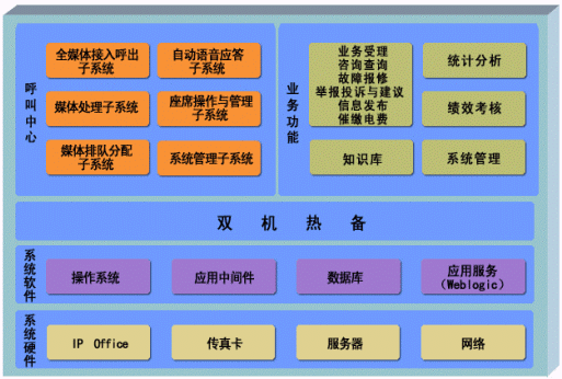 呼叫中心將多個功能服務器通過軟件技術進行整合,最終通過一臺電信級服務器提供統(tǒng)一的服務,減少了偶合點,提高了整體性能,并且使系統(tǒng)實現(xiàn)容錯處理成為可能。
