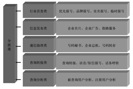 面向個人用戶提供簽約企業(yè)的行業(yè)推薦、品牌名稱、企業(yè)實名、企業(yè)臨時號碼等查詢方式,提高簽約企業(yè)的查詢率,使企業(yè)獲得更多的商機。包括以下五類子業(yè)務(wù):