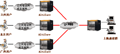 奧迪堅(jiān)分布式呼叫中心圖 (多對(duì)多) :