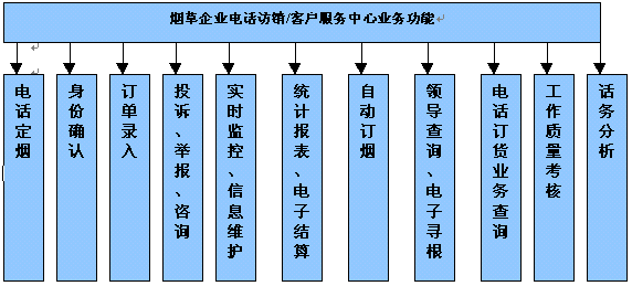 隨著國內(nèi)煙草專賣體制市場化進程的不斷推進,在煙草全行業(yè)建立以"電話訂貨、網(wǎng)上配貨、電子結算、現(xiàn)代物流"為基本特征的現(xiàn)代流通體制已經(jīng)成為必然的選擇,實現(xiàn)煙草專賣體制下舊的和落后的營銷體制向現(xiàn)代營銷體制的轉(zhuǎn)變。煙草企業(yè)建立電話訪銷/客戶服務系統(tǒng)的目標是最大程度地提高客戶的滿意度,其核心是實現(xiàn)高水平的建設水平,提高企業(yè)對市場的控制力,最終保證企業(yè)擁有持續(xù)的競爭力和良好的贏利。