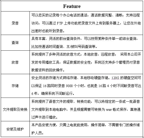 錄音服務器采用嵌入式(Embedded)Linux操作系統,高性能壓縮芯片,語音文件僅為1KB/S,綜合性價比突出;