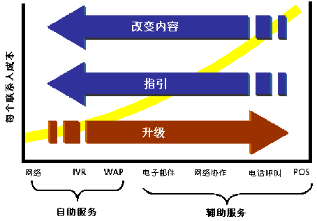 我們從下面的圖表中可以看到:謹(jǐn)慎選擇用于執(zhí)行的聯(lián)系渠道,對(duì)客戶進(jìn)行適當(dāng)?shù)闹敢诳蛻舴⻊?wù)系統(tǒng)中運(yùn)行正確的升級(jí)機(jī)制,可以降低聯(lián)系費(fèi)用并且能夠優(yōu)化資源。