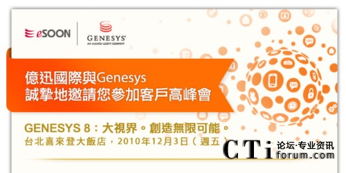 持續(xù)優(yōu)化企業(yè)績效及培養(yǎng)意見領(lǐng)袖,都是協(xié)助我們在臺灣的用戶與其客戶有更佳交流往來的重要作法,因此,我們特別籌辦了‘客戶高峰會’,全面邀集來自Genesys新加坡、香港及中國的專家和同儕與您面對面,進(jìn)行互動的知識分享與意見交換。