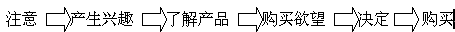 另外在其它的銷(xiāo)售渠道上,如電視、廣播、報(bào)紙等,他們對(duì)市場(chǎng)目標(biāo)的準(zhǔn)確度都是不高的,因?yàn)檫@樣的原因,也無(wú)法對(duì)目標(biāo)市場(chǎng)作掌控和測(cè)試,雖然他們可以很快速的擴(kuò)展市場(chǎng),對(duì)市場(chǎng)產(chǎn)生很大的響應(yīng)力,但如果沒(méi)有很好的市場(chǎng)營(yíng)銷(xiāo)與品牌整體性和長(zhǎng)期性規(guī)劃,也很快的會(huì)變成曇花一現(xiàn),歷史中的記憶,這些渠道的成本也是最高的,所以不是所有的企業(yè)都能一體適用的,尤其是中小型企業(yè)是無(wú)法長(zhǎng)期負(fù)擔(dān)的。誠(chéng)如在之前的文章里面分析所講的,最好的銷(xiāo)售效果是一拉一推的力量,用多媒體感官性及理性的獲取消費(fèi)者的注意力,再配合快速效能的主動(dòng)銷(xiāo)售,往往能將營(yíng)銷(xiāo)的效果提升到最高的層面。將到這兒,就不得不順帶提到消費(fèi)者購(gòu)買(mǎi)的行為模式。我們將消費(fèi)者對(duì)購(gòu)買(mǎi)的心理和行為分為幾個(gè)階段: