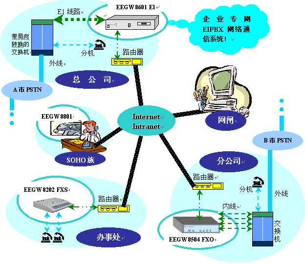 解決方案一:企業(yè)專網EIPBX網絡通信系統(tǒng)