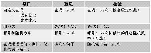 對Nuance方案,鑒別使用的密碼接口方案或類型都不受限制。各公司可自由選擇最適合于應(yīng)用系統(tǒng)的任何接口;如果以后覺得別的接口更加有效,用戶無需選擇新的技術(shù)提供商即可改變接口。聲紋鑒別中的這種靈活性和實(shí)用性是前所未有的。下表列出部分Nuance可實(shí)現(xiàn)的不同用戶接口: