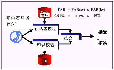 下圖說明了生物統(tǒng)計(jì)聲紋鑒別和知識校驗(yàn)的結(jié)合產(chǎn)生的增強(qiáng)效果。這種集成系統(tǒng)的保密級別由下列因素決定: