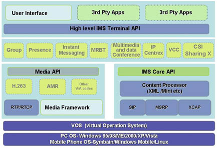 高陽(yáng)IMS軟終端產(chǎn)品線是基于IMS(IP多媒體子系統(tǒng))技術(shù),以通信終端功能為主,融入IT特性,將在線狀態(tài)、即時(shí)消息和群組管理融為一體,集合語(yǔ)音、數(shù)據(jù)、視頻通信,提供統(tǒng)一的用戶體驗(yàn),實(shí)現(xiàn)移動(dòng)電話、PC之間的互聯(lián)互通,并且符合3GPP/ETSI/OMA/IETF/ITU-T等國(guó)際標(biāo)準(zhǔn)組織和中國(guó)電信/中國(guó)移動(dòng)規(guī)定的IMS相關(guān)規(guī)范。