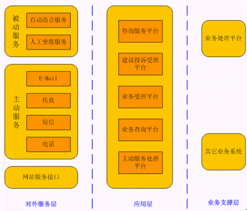 該系統(tǒng)提供5*8小時人工服務和7*24小時自動服務,提供政策法規(guī)咨詢、辦事指南、信息查詢、受理投訴舉報、進行社會調查五大功能;預留電話職介和受理勞動保障相關電話業(yè)務兩大功能,同時提供輔助功能,包括:資料庫建設,信息定制與發(fā)布,內(nèi)部管理等。