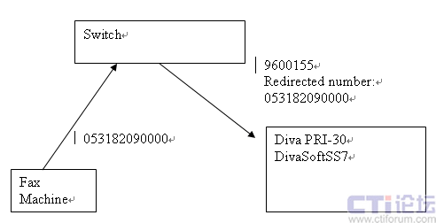 Dialogic Diva SS7傳真解決方案簡介:以往的傳真運營在處理接收傳真的時候都是通過提供一個接入平臺號(例如山東網(wǎng)通的商務(wù)新動力為9600155),然后通過語音提示輸入傳真信箱號。這樣做的缺點在于對于所有的客戶來說接入號碼都是統(tǒng)一的,不能滿足個性化需求。有一些客戶不想失去原有的傳真機號碼。希望網(wǎng)絡(luò)傳真系統(tǒng)能夠綁定他們原來的傳真?zhèn)髡鏅C號碼。例如某客戶原有的號碼是053182090000,通過號碼綁定,當(dāng)其他用戶向他發(fā)傳真的時候,撥打的號碼是053182090000,但是此呼叫會被呼轉(zhuǎn)到9600155。傳真平臺根據(jù)原始被叫號來接收傳真。原有的基于PRI的解決方案不能解決原始被叫號的傳送問題,所以必須借助SS7網(wǎng)絡(luò)才能實現(xiàn)。客戶撥打053182090000,呼叫被呼轉(zhuǎn)到9600155.在Redirected