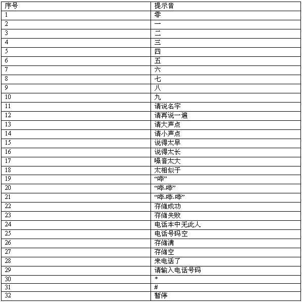 1-人名訓(xùn)練 2-人名識(shí)別 3-語(yǔ)音電話(huà)本 4-語(yǔ)音合成 5-控制功能 6-調(diào)試 7-DTMF 8-音樂(lè) 9-實(shí)時(shí)錄音/回放 10-來(lái)電播報(bào)
