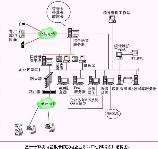 對于20個(gè)以下座席的中小型家電企業(yè)呼叫中心系統(tǒng),則建議使用基于計(jì)算機(jī)語音板卡的形式,可以減少家電企業(yè)投資,同時(shí)具有良好的系統(tǒng)性能;以確保合理的、較少的投入,獲取最佳的配置,滿足不同家電企業(yè)的需求。