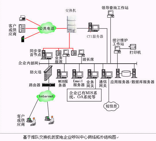 對于大中型的家電企業(yè)呼叫中心系統(tǒng),可選用排隊(duì)交換機(jī)作為語音接入設(shè)備,保障系統(tǒng)的高可靠性和穩(wěn)定性;