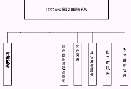 本12333勞動保障公益服務(wù)系統(tǒng)業(yè)務(wù)功能結(jié)構(gòu)如下圖所示: