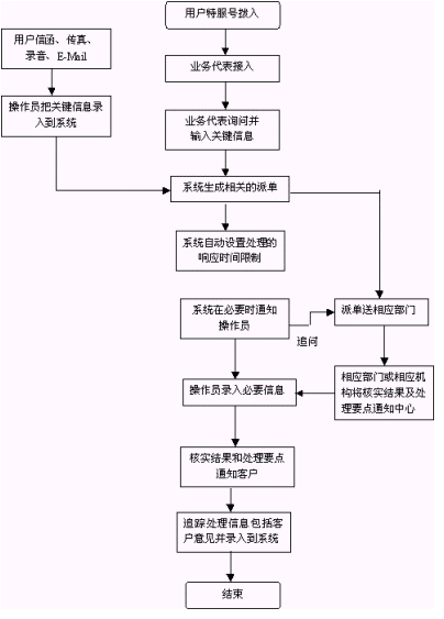 本系統(tǒng)能夠?qū)?shù)據(jù)庫中每天收到的的各種類型的信息進(jìn)行整理后供查詢,或?qū)⑿畔⒌慕y(tǒng)計報表和其他的各種信息匯總輸出,上報給相關(guān)部門或領(lǐng)導(dǎo)。各相關(guān)部門調(diào)查處理結(jié)果和答復(fù)意見出來后,再由座席話務(wù)人員通知到本人。也可由系統(tǒng)自動撥通聯(lián)系電話,由系統(tǒng)通過傳真或電腦語音自動播報調(diào)查處理結(jié)果和答復(fù)意見來完成回饋。