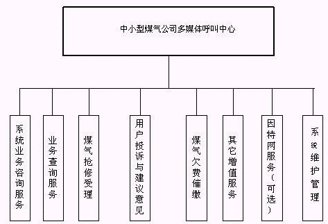 客戶利用電話、手機(jī)等撥打某一特服號碼(如9xxxx)進(jìn)入中小型煤氣公司多媒體呼叫中心系統(tǒng),本系統(tǒng)依托煤氣公司各類業(yè)務(wù)技術(shù)支持系統(tǒng)和網(wǎng)絡(luò)系統(tǒng),通過人工受理或自動語音服務(wù)等方式全天24小時(shí)不間斷地為客戶提供各種服務(wù)。