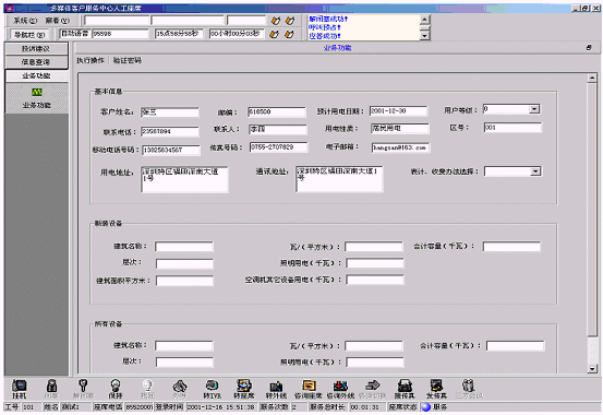 客戶信息包括客戶編號、客戶名稱、聯(lián)系電話、地址、所屬地區(qū)、地區(qū)編號、用戶人口數(shù)、樓層等多項(xiàng),接聽客戶呼入電話,由座席代表記錄信息形成檔案,也可采用更為主動的呼出方式來確認(rèn)、核實(shí)、補(bǔ)充檔案。