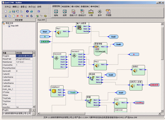 支持語音流程自動生成功能,便于擴(kuò)展業(yè)務(wù):系統(tǒng)提供功能強(qiáng)大的應(yīng)用開發(fā)環(huán)境:可視化語音流程開發(fā)環(huán)境、DLL功能加載、人工座席控制等;提供在線調(diào)試工具、預(yù)編譯功能及錯誤檢查功能;提供開放的應(yīng)用層接口,動態(tài)加載新的業(yè)務(wù)模塊