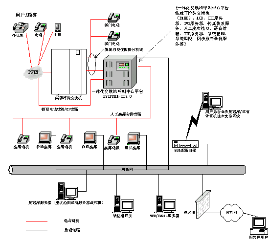 基于博宇科技一體化交換機呼叫中心平臺產(chǎn)品BYIPPBX-CC2.0的長安鈴木公司客戶服務中心系統(tǒng)網(wǎng)絡結(jié)構(gòu)