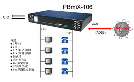 在21世紀的今日,隨著網(wǎng)絡應用的普及,無論是個人或企業(yè)對于交換機的觀念若仍拘泥于傳統(tǒng)的思維,將是落伍的。免費網(wǎng)絡電話、分散式系統(tǒng),將是傳統(tǒng)交換機 在增加語音信箱/自動總機功能之后,系統(tǒng)機制的重大變革。本公司推出的PBmaX/PBmiX系列IP-PBX,不但將上述所有功能整合于一體,進一步可內(nèi)建公司VPN、Web服務器、GateKeeper等功能,呈現(xiàn)出數(shù)字交換機的全新風貌,并將新的電話使用觀念帶進企業(yè)、SOHO辦公室與家庭內(nèi)。