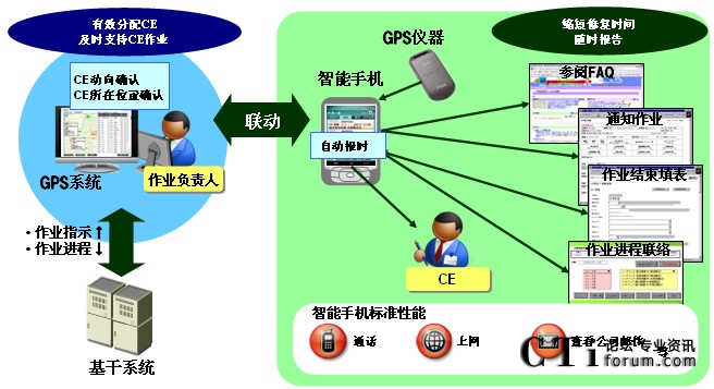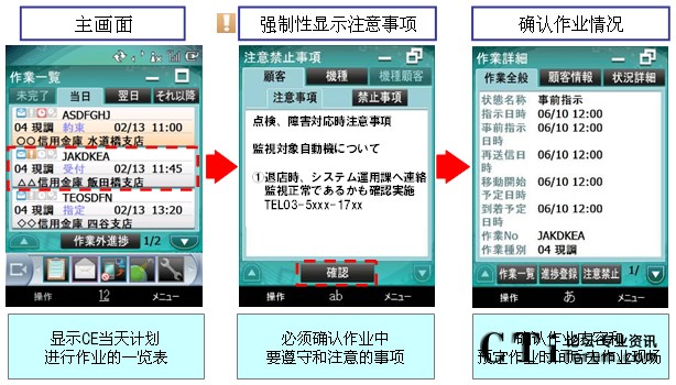 “MoBiz AP for CE支持系統(tǒng)”是在支持保修人員在工作現(xiàn)場作業(yè)的同時(shí),實(shí)現(xiàn)總部對工作現(xiàn)場“可視化”管理的應(yīng)用程序軟件包。