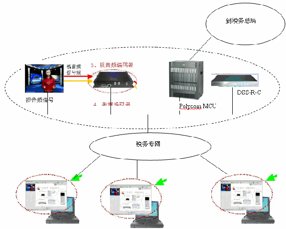 江西地稅組建了全省性的視頻會議網絡,系統(tǒng)采用了Polycom的解決方案。會議網絡覆蓋到了縣一級的稅務機關,但是由于投資和網絡條件的限制,無法實現全系統(tǒng)的覆蓋。在此情況下,深圳銳取軟件技術有限公司向江西地稅提供了流媒體的解決方案,以非常經濟的方式把視頻會議系統(tǒng)延伸到了稅務系統(tǒng)內的每一個桌面。而且它還解決了原有系統(tǒng)中會議過程的記錄問題,實現整個會議的聲音、視頻和數據的全程錄制,未與會人員可以隨時隨地登陸到服務器上點播和觀看會議過程。