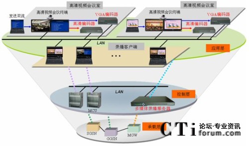 圖:銳取多媒體錄播系統(tǒng)應(yīng)用于IMS系統(tǒng)高清視頻會議