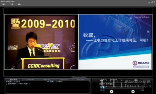 本次論壇分為電力企業(yè)信息化高峰論壇、電力企業(yè)“十二五”信息化藍(lán)圖展望、電力信息化標(biāo)桿研究及評選結(jié)果發(fā)布、研討國際電力信息化標(biāo)桿發(fā)展方向、研討“智能”落地打造中國智能特色五大議題。深圳銳取受主辦方委托為論壇提供全程錄播服務(wù)。相比傳統(tǒng)攝像機(jī)記錄會議的方式,銳取多媒體錄播系統(tǒng)實現(xiàn)了會議現(xiàn)場視頻與講演者PPT同步完整記錄,新穎的記錄方式受到了主辦單位和與會者的好評。