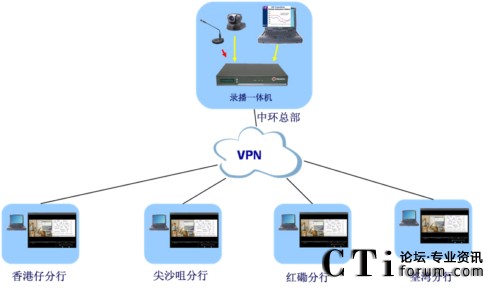 信誠證卷希望構(gòu)建一套基于VPN網(wǎng)絡的遠程培訓系統(tǒng),方便集團總部和分支機構(gòu)職員的隨時隨地的培訓和學習需要。系統(tǒng)要求可以同步錄制培訓過程的視音頻和PPT,并可實時直播集團下屬的尖沙咀等分行,職員也可以事后登陸系統(tǒng)進行點播學習。