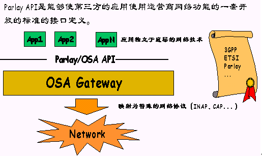 API和INAP、CAP等專用電信協(xié)議進行映射最終在智能網上進行業(yè)務執(zhí)行,達到最終NGN的業(yè)務開放程度,但業(yè)務的豐富性受到INAP等專用協(xié)議的限制。第二步,將SCP系統(tǒng)的軟件架構向OSA體系進行過渡,這個過程關鍵點在于保證業(yè)務用戶流程和業(yè)務數(shù)據(jù)的兼容性,最終,SCP的業(yè)務實現(xiàn)架構將融合于Parlay