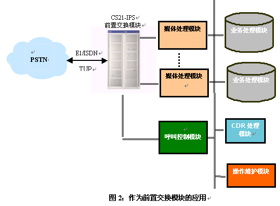 前置交換模塊:是一套可編程交換機(jī),提供E1和10/100M Ethernet接口,支持SS7、ISDN、TUP等信令 。具有大容量交換網(wǎng)絡(luò)、信號(hào)音、語(yǔ)音資源、會(huì)議電話功能。
