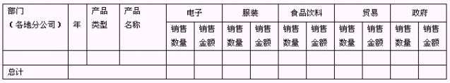 作為分公司銷售經(jīng)理,需要查看分公司每個(gè)銷售員的銷量統(tǒng)計(jì),便于向銷售總監(jiān)做好匯報(bào),需要同時(shí)知道不同產(chǎn)品類型的銷量?梢酝ㄟ^(guò)分組報(bào)表來(lái)實(shí)現(xiàn),如下圖: