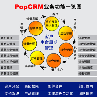 PopCRM吸收了國內(nèi)外先進的管理思想,以客戶的需求為根本,以應用價值為核心,聚焦銷售環(huán)節(jié),對客戶資源統(tǒng)一管理,規(guī)范銷售行為;對銷售進行分析預測,提供決策依據(jù);對客戶進行全面分析,提供客戶關懷,吸引并留住客戶,全面提高企業(yè)的盈利能力。