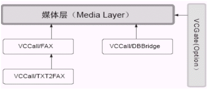 Media Layer由VCCall/DBBridge、VCGate(Option)、VCCall/FAX、VCCall/TXT2FAX、VCCall/FAX、VCCall/TXT2FAX組成VCCall媒體層提供了除電話之外進行交互的其他媒體組件,包括:傳真VCCall/FAX、數(shù)據(jù)庫訪問媒體VCCall/DBBridge。
