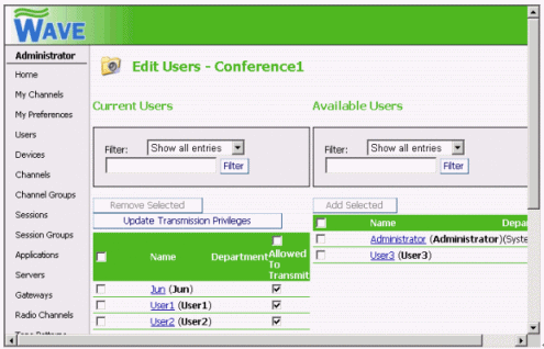 WAVE的使用方式為:管理員在服務(wù)器端建立IP電話會(huì)議,參加者使用本地計(jì)算機(jī)作為客戶端,通過(guò)耳機(jī)和麥克風(fēng)即可加入會(huì)議。一臺(tái)普通的奔四PC機(jī)可以支持?jǐn)?shù)千個(gè)會(huì)議,每個(gè)會(huì)議也允許數(shù)百個(gè)用戶參加。管理員可以分配用戶不同的權(quán)利:如講話,主持會(huì)議等等。