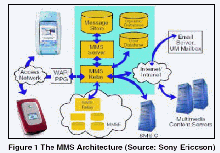 本概述提供了有關(guān)MMS標(biāo)準(zhǔn)的簡要介紹,主要針對視頻內(nèi)容交換方面的內(nèi)容。基本的MMS網(wǎng)絡(luò)架構(gòu)如圖 1。